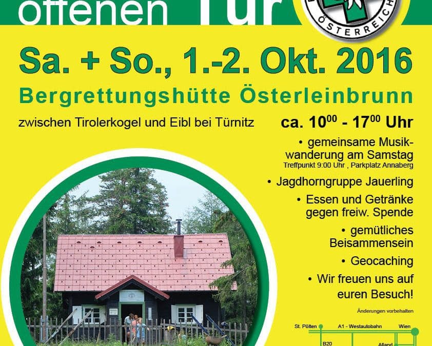 Am 01.+02. Oktober 2016 findet wieder ein „Tag der offenen Tür“ auf unserer Bergrettungshütte in Österleinbrunn statt.