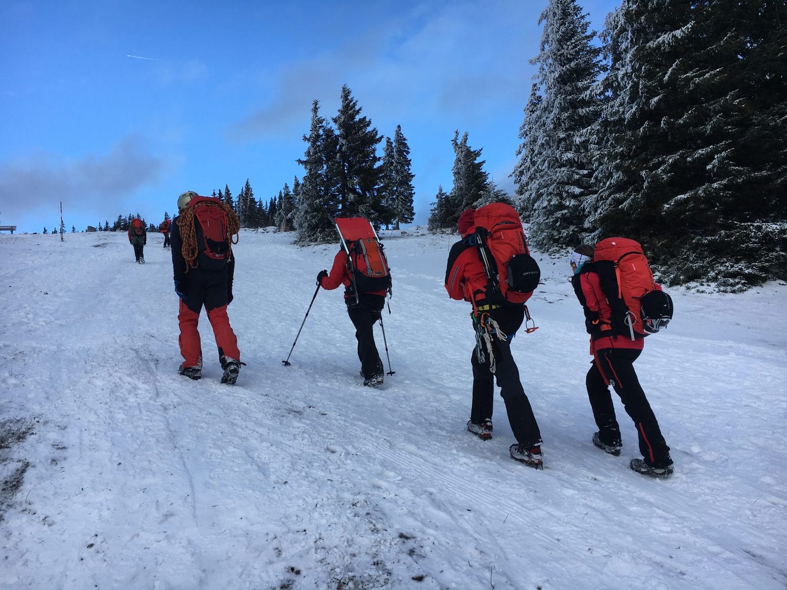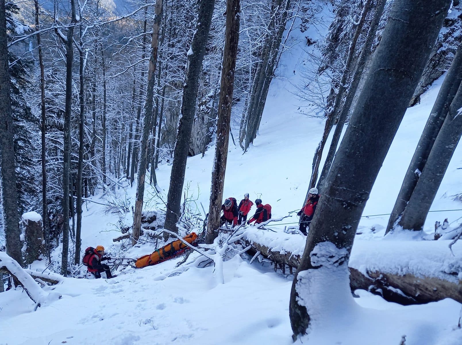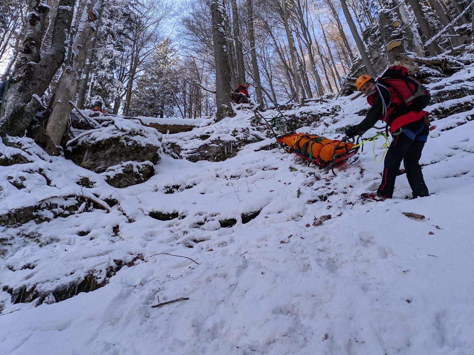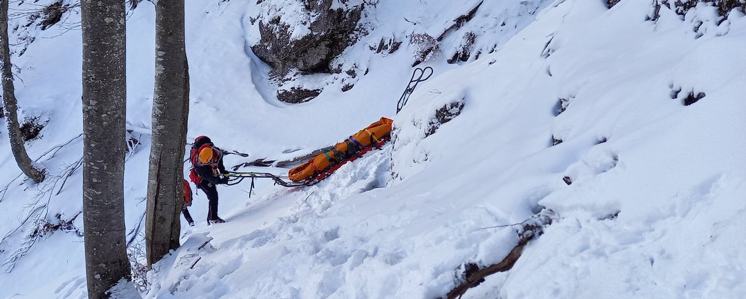 Beim Aufstieg auf den Tirolerkogel in Annaberg in der doch zugegebenermaßen viel mehr winterlichen Landschaft als gedacht, kamen wir aufgrund der nicht mehr sichtbaren Steigspuren vom Weg ab und landeten plötzlich in sehr steilem, felsdurchsetztem Gelände. Nur mit den Wanderschuhen hatten wir wenig Halt und plötzlich rutschte ich am so ziemlich ungünstigsten Punkt oberhalb einer steilen Passage aus und stürzte etwa 15 Meter ab bis mich ein Baum unsanft abbremste. Ein starker Schmerz im Fuß machte sich unmittelbar bemerkbar und rasch war klar, dass ein Abstieg aus eigener Kraft wohl nicht mehr möglich sein wird. Mein Vater bekam den Absturz nur durch meine Schreie mit und verletzte sich dann auch noch am Arm, als er zu mir absteigen wollte. Zum Glück hatten wir Handyempfang und mein Vater konnte gleich einen Notruf absetzen.